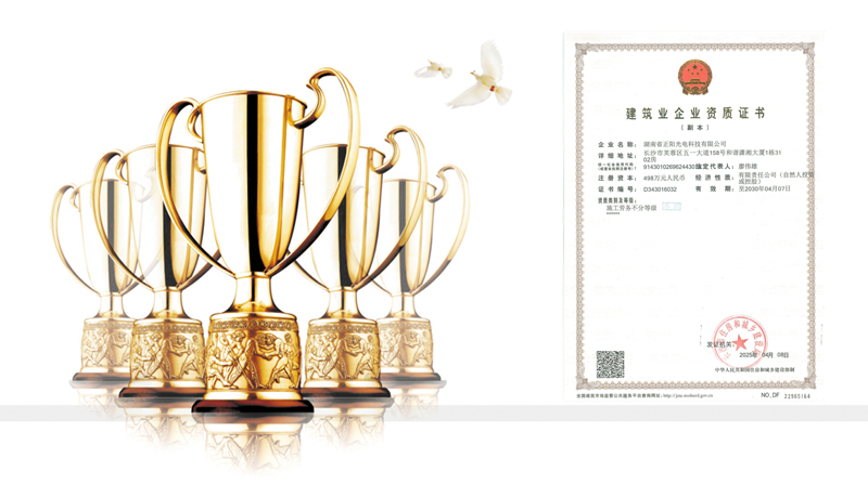 湖南省正陽(yáng)光電科技有限公司是一家從事亮化工程及大型燈光藝術(shù)的設(shè)計(jì)、制作、安裝和維護(hù)于一體的專業(yè)化公司。公司資質(zhì)齊全、管理嚴(yán)謹(jǐn)、技術(shù)先進(jìn)、實(shí)力雄厚,取得了城市及道路照明工程專業(yè)承包壹級(jí)資質(zhì)、照明工程設(shè)計(jì)專項(xiàng)甲級(jí)資質(zhì)、機(jī)電工程施工總承包貳級(jí)資質(zhì)、施工勞務(wù)等資質(zhì)、國(guó)家高新技術(shù)企業(yè)、國(guó)家“重質(zhì)量·守誠(chéng)信”示范企業(yè)。